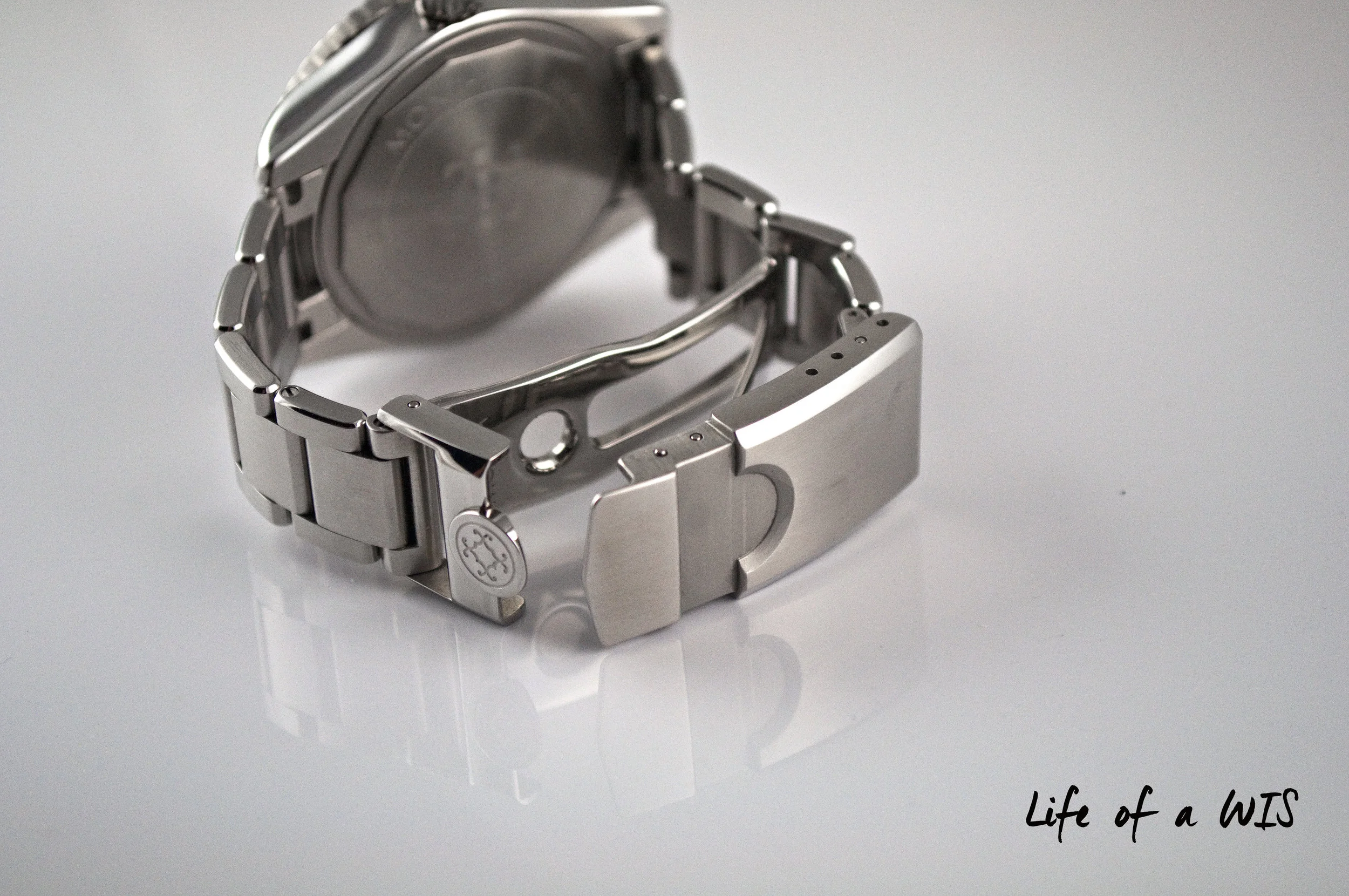 A lot of effort has been put into the design and quality of this bracelet. After wearing the Oceanking for three straight weeks, there is no question that it is one of the most comfortable watches I have ever worn. The articulating feature on the bracelet allows the bracelet to contour to your wrist. In addition, the clasp design ensures that there are no unnecessary surfaces pressing against your wrist that could cause discomfort (such as side buttons which are typical on a butterfly clasp).